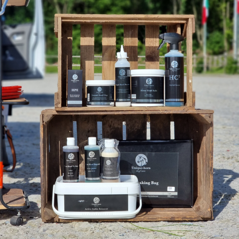 Speciaal voor kleine pony's, mini's of shetlanders heb ik een mini hoefbokje. Door het gebruiken van dit hoefbokje kan ik werken op een hoogte die voor de mini's erg prettig is. Niet alleen is het hoefbokje fijn voor de kleintjes, maar ook voor paarden met artrose gebruik ik hem vaak. Als paarden bijvoorbeeld moeite hebben om de achterbenen omhoog te houden dan leg ik ze in dit bokje. Dit is veel lager bij grond en word als erg prettig ervaren.